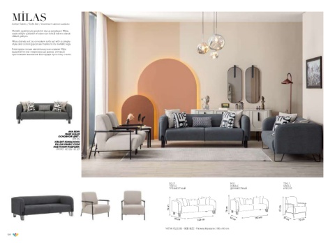 Milas stands out as a modern sofa set with a simple